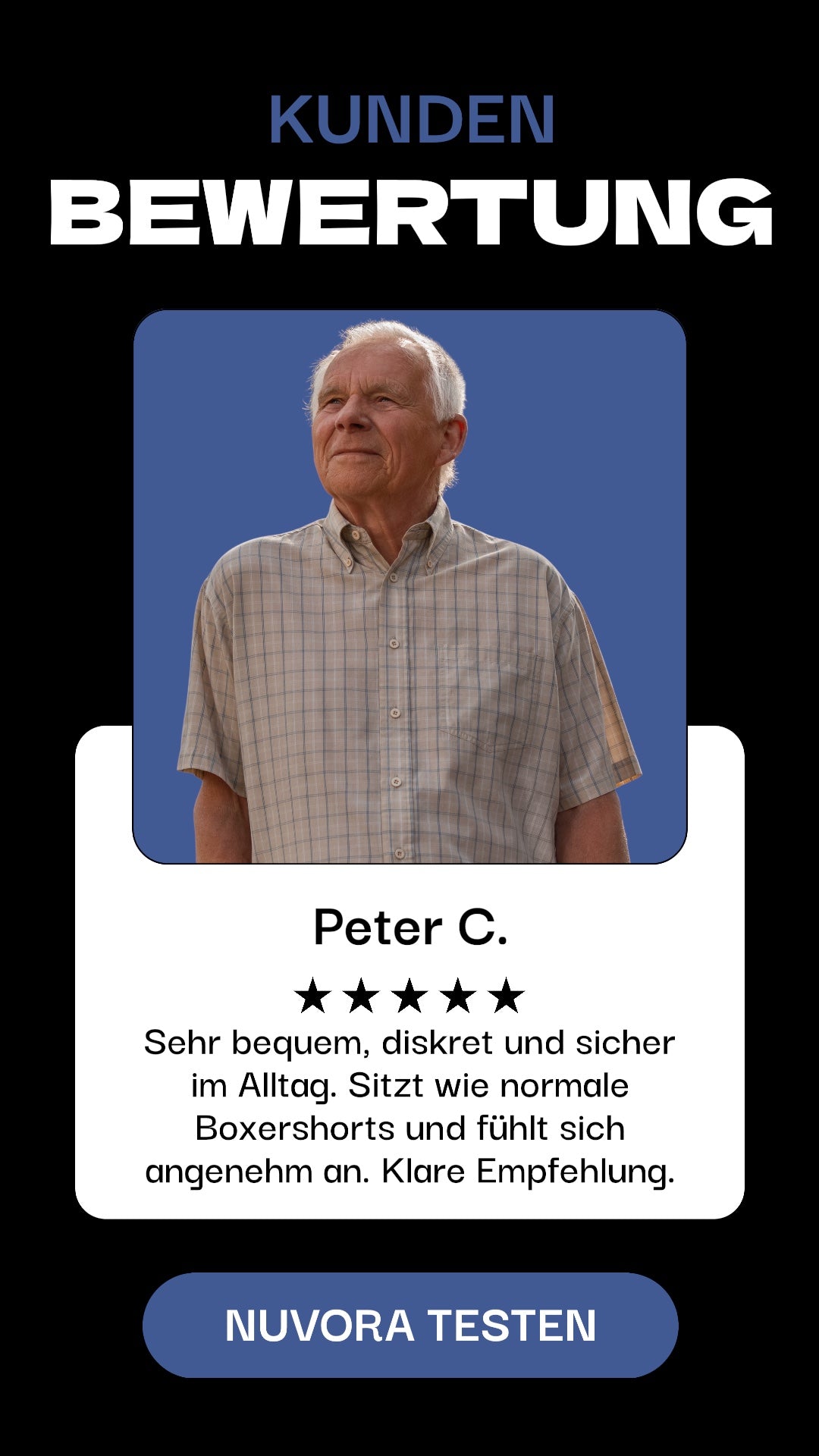 Wenn Sie Nuvora tragen, können Sie sich auf Ihren Alltag konzentrieren, statt sich Sorgen zu machen. Sie gibt Ihnen Sicherheit und ein gutes Gefühl, ohne dass man ihr den Unterschied ansieht.